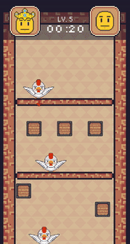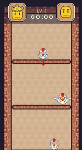 You play as a bunch of chickens that try to make their sad king laugh again by delivering jokes to him in the form of emojis, where every emoji makes the chicken act differently.